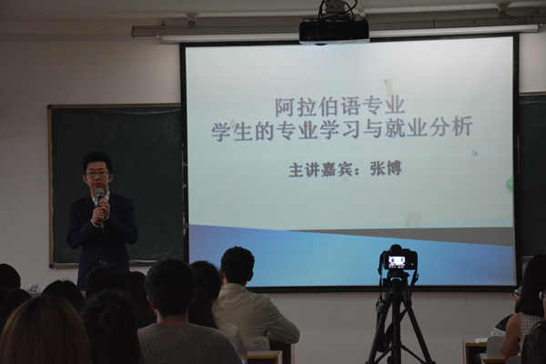 晚上,张博还专门与我系阿拉伯语专业的同学面对面,围绕阿拉伯语的专业特点,在学习方法、大学规划和未来就业等问题上给出了更有针对性的建议。一天之中的两场讲座,赢得了师生们经久不息的掌声,很多同学感到收获满满,“张博老师的讲座让我们对大学学习有了更清晰的计划,让我们再次坚定了学好外语的信心和决心。”
