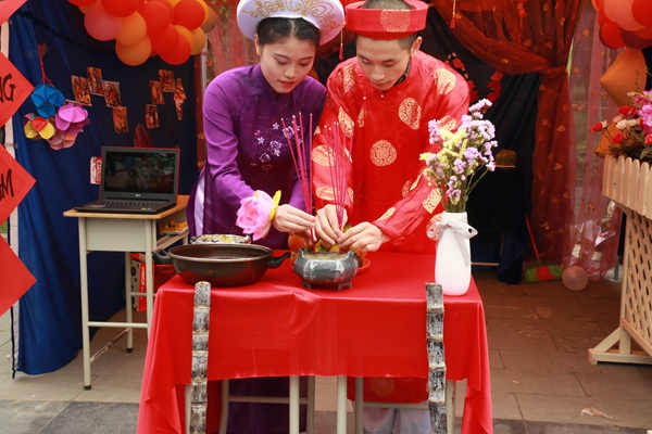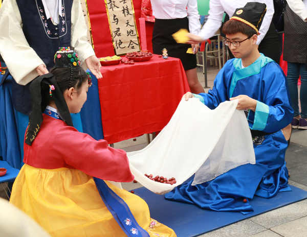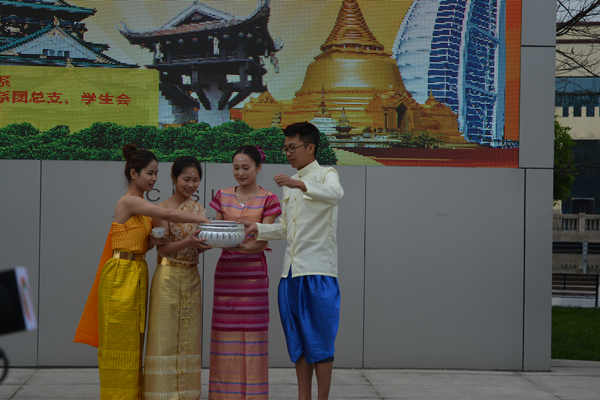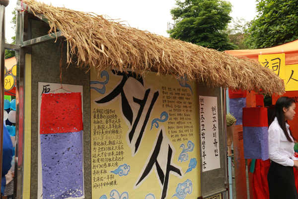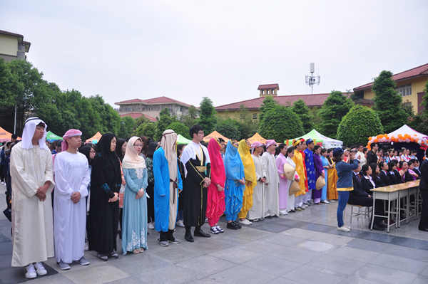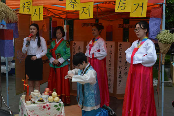 “主题风俗文化展”是专业魅力的展示,是各国文化的传播。同学们结合对专业对象国的文化理解,用语言搭桥,选定展示主题,精心准备,搭建起15组展棚,每个展棚都配有双语解说,解说员们穿戴具有不同民俗风情的服饰,展示内容可谓是别具一格,精彩万分。朝鲜语专业的传统祭祀,传统婚礼,潮流文化;泰语专业的泰国礼仪服饰、水灯节文化;越南语专业的茶韵之趣;阿拉伯语专业的海娜手绘、书法绘画、古埃及风情文化展。风俗文化展特色鲜明,文化氛围浓厚。