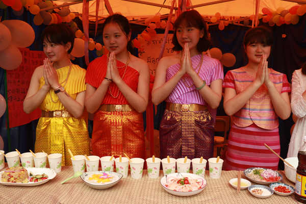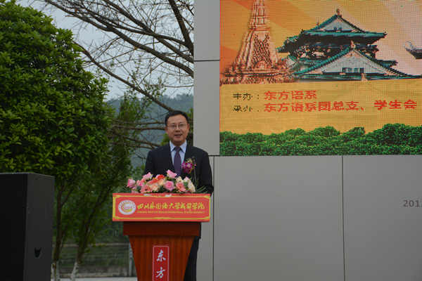 4月21日,我系第二届“东方文化节暨实践教学日”活动开幕式在口语角隆重举行。学院党委副书记张华春同志、系主任黄华宪老师、系党总支书记叶友红老师、各专业教师以及全系学生参加了开幕式。开幕式上,学院党委副书记张华春同志和系主任黄华宪老师为本次活动致辞,并在泰国宋干节祈福仪式上共同放飞希望鸽为学院祈福。