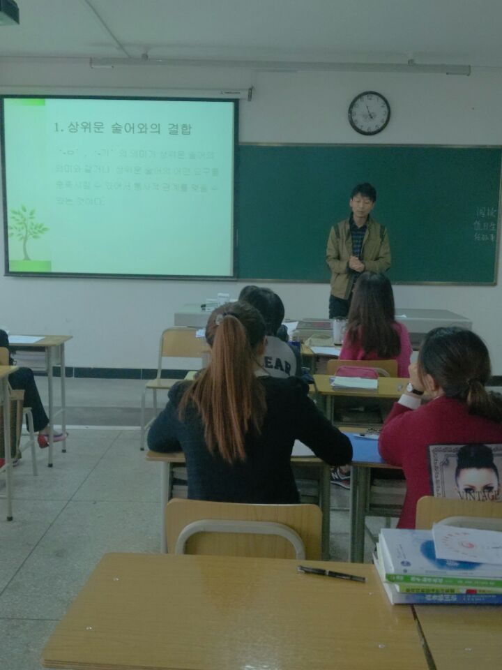 2016年10月20日下午,我系朝鲜语专业精读教研室以“韩国语名词形语尾辨析与课堂设计”为主题,进行了一次内容充实的教研活动。主讲人为许菁老师、吴春光老师、王雪老师及邓小卉老师,朝鲜语专业精读教研室的老师全部参加了本次教研活动。