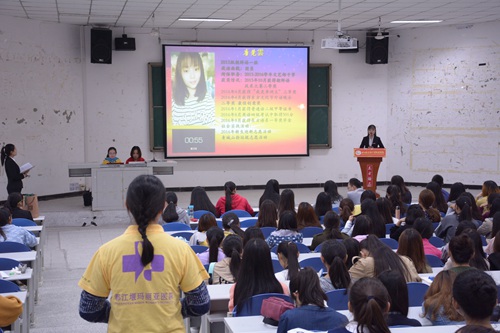 10月24日下午1:30,我系在阶梯教室A201隆重举行了2015-2016学年十佳优秀学生特别奖学金评审会。经过层层筛选,来自2015级朝鲜语1班的唐莞雲、2014级阿拉伯语2班的赵伟宏、2015级朝鲜语6班的赵晶晶、2013级阿拉伯语1班的张荔涵、2013级朝鲜语1班的胡杰、2015级越南语1班的陈娇和2015级阿拉伯语2班的黄燕青进入最后的评审环节。系主任黄华宪老师、系党总支书记叶友红老师、系团总支书记刘谋龙老师、全体辅导员老师、2016级部分学生和选手亲友团也到场观看并为选手加油助威。