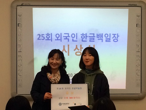 10月30日,由韩国延世大学世宗学堂举办的第25届“外国人韩语写作大赛”颁奖仪式在四川师范大学狮子山校区举行。澳门永利集团3044东方语系朝鲜语专业学子再传捷报,一举夺魁,并将赛事绝大多数奖项收入囊中。