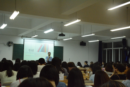 为了进一步加强我系学子对考研的了解与认识,强化学生们的考研意识。我系于5月22日晚7:30在一教B212教室举办了考研专题讲座。系主任黄华宪老师、系主任助理徐先美老师以及考研指导老师马丽玲老师出席并指导了本次大会。