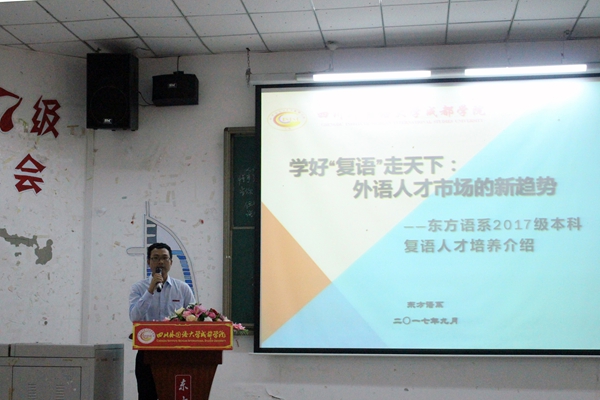 在急需新型人才的今天,我系率先开展“复语”人才培养,首批学子将作为四川乃至西南地区新兴的“复语”外语人才,去迎接四年之后的挑战,为未来的社会注入真正的“复合型”血液。未来的东方学子,定将值得期待!