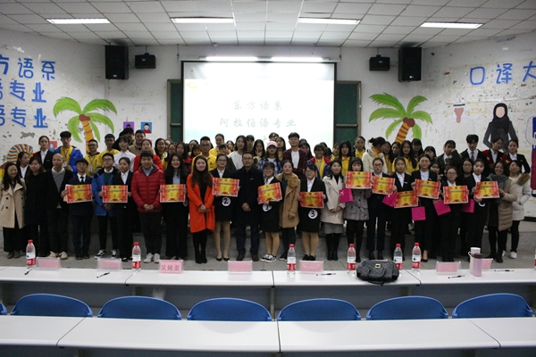 为了检验我系学生专业语言掌握情况和熟练程度,锻炼学生语言表达能力和组织能力,提高学生学习自觉性和积极性,我系朝鲜语专业和阿拉伯语专业口译大赛于2017年11月28日晚7:00在一教A201隆重举行。系主任黄华宪副教授,系主任助理吴娅蕾老师以及朝鲜语、阿拉伯语专业的全体老师和同学出席并观看了此次比赛。