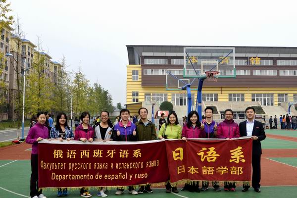比赛场上,气氛活跃、热情高涨,角逐激烈但充满了和谐友好的氛围。场边师生组成的啦啦队摇旗呐喊、鼓声不断,场面异常热烈。我代表队先后与来自英语经贸系、英语师范系、翻译系、英语旅游系的老师们同场竞技,尊重对手、全力以赴,摔倒撞伤也毫不在意,展现了我代表队勇往直前、奋勇拼搏、团结一致的良好精神风貌。赛后,我代表队的老师们纷纷与对手握手示意,体现了在比赛中增进感情,加强交流的主旨。最终,我系与俄语西班牙语系联队以4战2胜2负的成绩结束了此次比赛。