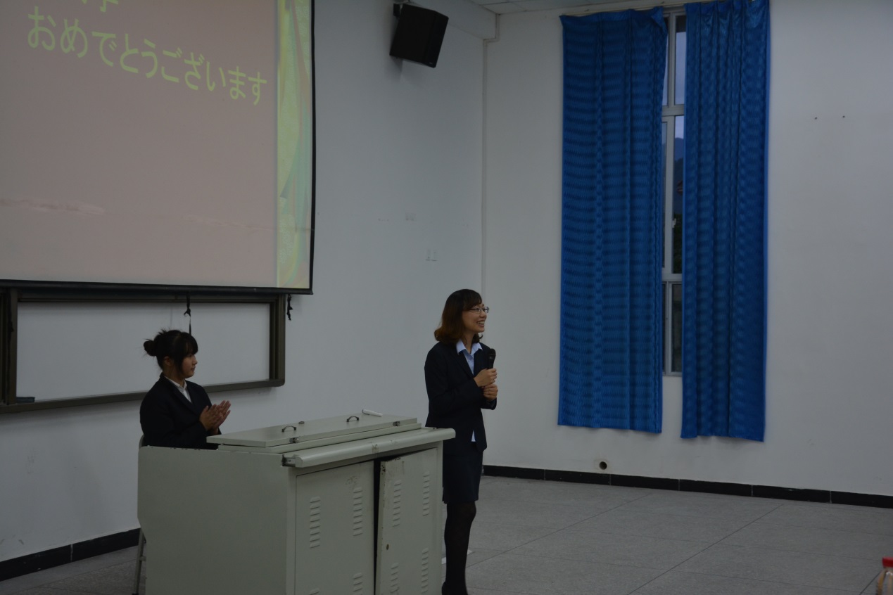 系主任助理陈强向同学讲述了学习日语的有利之处,给同学们介绍了一些日本文化的可学之处。教师代表大一年级组组长田敏老师以《大学,你准备好了吗》为题给同学们介绍了日语学习方法、介绍了澳门永利集团3044的留学项目及我系留学生在国外的学习生活情况。团总支书记马蕾介绍了我系团学的基本构建情况,团学参加学院和自己系部开展活动的情况,对我系团学未来一年的发展做了规划,热情邀请同学们加入团总支学生会。外籍老师森本晃子用流利优美的日语向同学打招呼,与同学们进行交流互动,让新同学们激动不已。