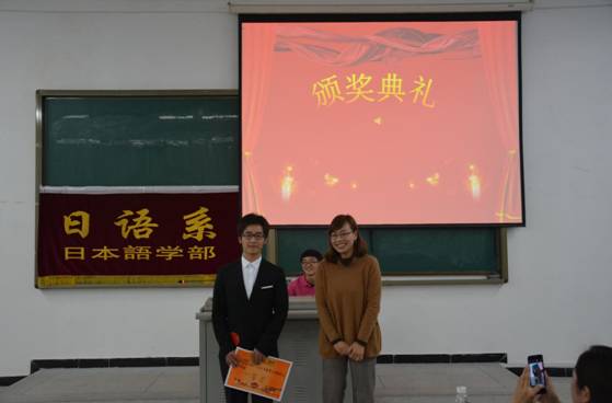 此次日语美文诵读比赛目的是为了提高同学们学习日语的兴趣。参赛选手共有十四位。比赛分两轮进行,在第一轮的激烈的角逐后六名同学成功晋级第二轮比赛。第二轮由选手随机抽取美文题库中的文章进行诵读,在整场比赛选手们都做到了发音准确,感情到位。其中来自2014级4班的王伟同学更是以纯正的发音、丰富的感情以及良好的发挥征服了现场的评委及观众,最终摘得桂冠。最后以外籍教师森本晃子老师的专业点评结束整场比赛。