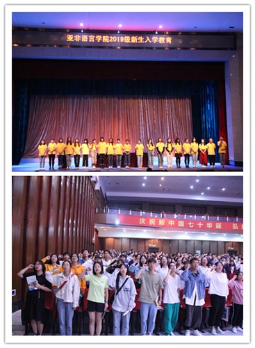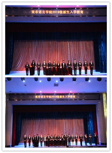 高年级代表、2016级朝鲜语专业张琪向新生分享学习心得,讲解成长感悟,强调学习是第一要务,实践是重要途径。2019新生代表杨苒发言,表示要热爱所学专业,奋勇拼搏,以亚非为荣,为学校争光。