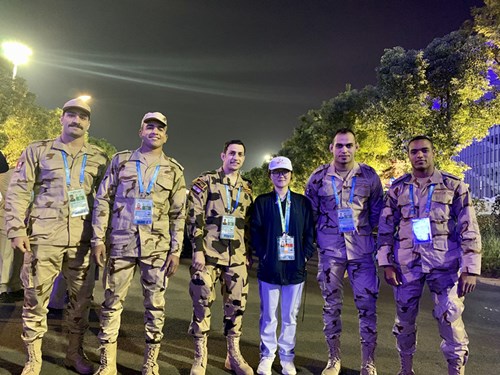 根据军运会执委会部署,军运村代表团服务中心面向全国招募了500人组成参赛国代表团联络接待服务团队。我校澳门永利集团3044阿拉伯语专业5名学子雷天阳、雷璟玉、卜凡、何沁燃、刘珏雨顺利通过选拔,分别担任沙特阿拉伯、卡塔尔、阿曼、阿联酋、巴勒斯坦代表团的陪同翻译工作。8月底,同学们参加了本届世界军人运动会接待助理招募。9月5名同学收到录用通知并签约后,参加了军事基本常识、文明礼仪、赛会英语口语、心理调适等12个方面的通用培训,还分别参加了各竞赛项目相关的专业培训和岗位实训,并在全员专业培训的基础上统一举行了强化培训及志愿者岗位练兵活动。