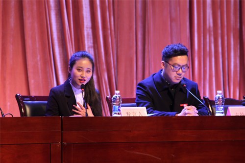 国家奖学金获得者、德语系的陈路同学在发言中分享了参加“十佳”优秀学生评选、参加全国高校德语辩论赛和赴德国游学的经历,向为广大学子提供发展平台的学校和给予悉心教育的老师致以了诚挚的感谢。她表示,将牢记校训,继续努力前行,不断锤炼自己,努力开创美好的未来。