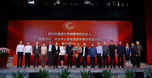 9月21日下午,四川外国语大学成都学院创始人、党委书记、校长尹大家教授退休离任欢送会在观澜堂隆重举行。成实外教育集团、四川外国语大学、中国独立学院协作会、四川省高等教育学会、川渝两地招生工作协作会、四川省民办教育协会、成实外教育集团所属各学校等单位的领导出席,我校全体教职员工参加了欢送会,向退休离任的尹大家校长致以崇高的敬意,表达真诚的祝福。