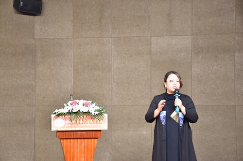 朝鲜语专业教师代表冯旭彤副教授就如何学好专业外语作了分享,强调学好外语第一是脸皮要厚,第二要培养良好学习习惯,第三要亲师,第四就是要同伴学习。冯教授强调同学们应该应该有民族自信,充分利用外语工具,不辱使命,不负韶华,担负起中华民族伟大复兴的历史重任。