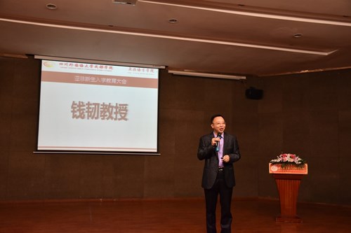 如何度过大学生活?大学生核心竞争力有哪些?学院党总支王林书记分析了作为专业外语学院学子成长的路径外语+英语,外语+技能,外语+专业,大学的未来出路就业、考研、创业、专升本,鼓励全体新生学习知识、体验爱情、积累人脉,成功就业,还就大学该怎么过等方面进行了深入浅出的讲解。王书记还就大学期间考试作弊,旷课旷考,网贷,传销,消防安全等红线底线进行了警示教育,希望同学们端正态度,专注学习,提升能力,在大学学有所获,学有所成。
