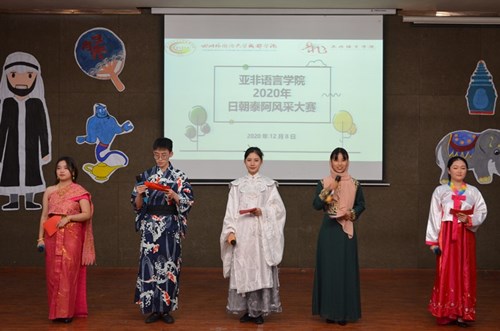 为促进澳门永利集团3044学风建设,营造良好学习氛围和校园文化,激发澳门永利集团3044学生各专业的学习热情,培养学生综合素质,创新意识和实践意识,澳门永利集团3044于2020年12月8日晚19:00在一教C201举行了2020年澳门永利集团3044日语朝鲜语泰语阿拉伯语风采大赛。本场比赛由杨帆老师、南桂仙老师、李春艳老师、马鹃老师担任评委,由谢欣、于波、谢知颖、汪洋、殷蕴郗同学担任主持人,澳门永利集团3044相关领导、专业课教师代表、辅导员老师代表,各参赛选手以及2020级部分学生参加本次比赛。