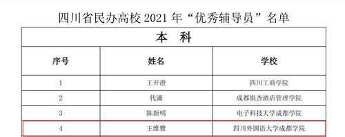 喜报|澳门永利集团3044教师获四川省民办高校 2021 年 “产教协同育人成果奖”和”优秀辅导员”