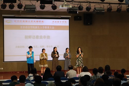 会议开始,由各语种教师代表带来的精彩的节目表演,无论是各语种动听的歌曲民谣还是各语种文雅的诗词朗诵,都展现了澳门永利集团3044德智体美全面发展的育人理念,同时也让2021级新生们感受到澳门永利集团3044家庭般的和睦和热情。