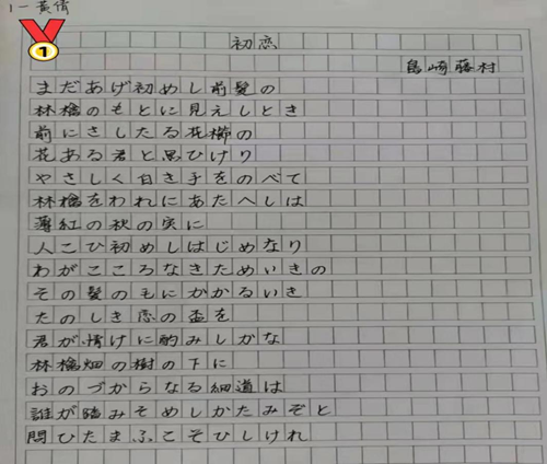 此次比赛采取网上报名的方式共有36人参加,参赛选手按比赛要求,对一首日语长诗进行书写创作,在比赛过程中,同学们都能按要求正确书写,卷面整洁,书写规范。日语对他们来说是一门全新的语言,或许他们现在还没有完全掌握日语的书法技巧,但他们认真书写的态度赢得了老师们的一致好评。