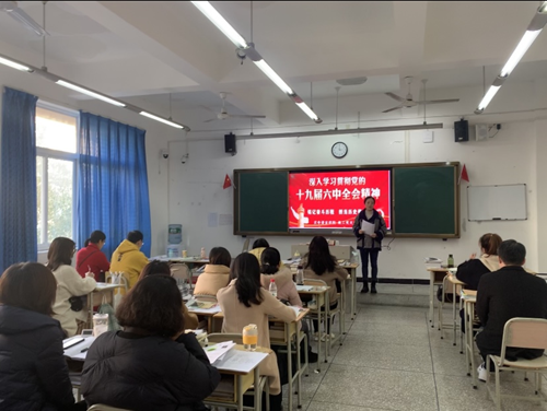党的十九届六中全会是在党成立一百周年的重要历史时刻,在党和人民胜利实现第一个百年奋斗目标、全面建成小康社会,向着全面建成社会主义现代化强国的第二个百年奋斗目标迈进的重大历史关头召开的一次具有里程碑意义的重要会议。全会审议通过的《中共中央关于党的百年奋斗重大成就和历史经验的决议》,是一篇光辉的马克思主义纲领性文献,是新时代中国共产党人牢记初心使命、坚持和发展中国特色社会主义的政治宣言,是以史为鉴、开创未来、实现中华民族伟大复兴的行动指南。高校教师要把学习成果转化为工作实效,继续引导学生从党的百年奋斗历程中汲取智慧力量,坚定信心、乘势而上,推动党的十九届六中全会精神落地生根,形成生动实践,推动教育事业高质量发展,以优异成绩迎接党的二十大胜利召开。