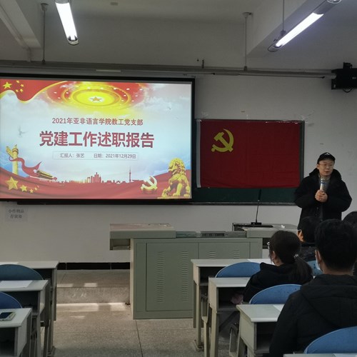 会议中,首先由教职工党支部书记张艺老师对本年度教职工党支部工作情况进行述职并提出存在的问题和未来工作方向。学生党支部书记辛佳启老师从支部基本情况、建设情况向与会人员述职,阐述建设中的不足和改进措施。