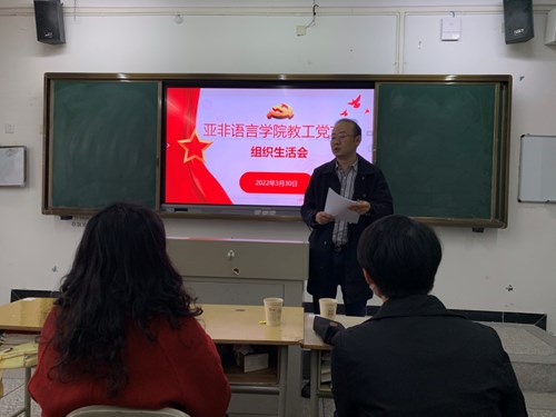 3月30日下午,澳门永利集团3044教工党支部按照学校党委的统一安排,召开了组织生活会。党政办主任谢玥、英语学院院长助理、教工党支部纪检委员夏花到会督导。澳门永利集团3044党总支书记钟伟,党总支副书记、院长刘轩和教工党支部全体党员参加会议。