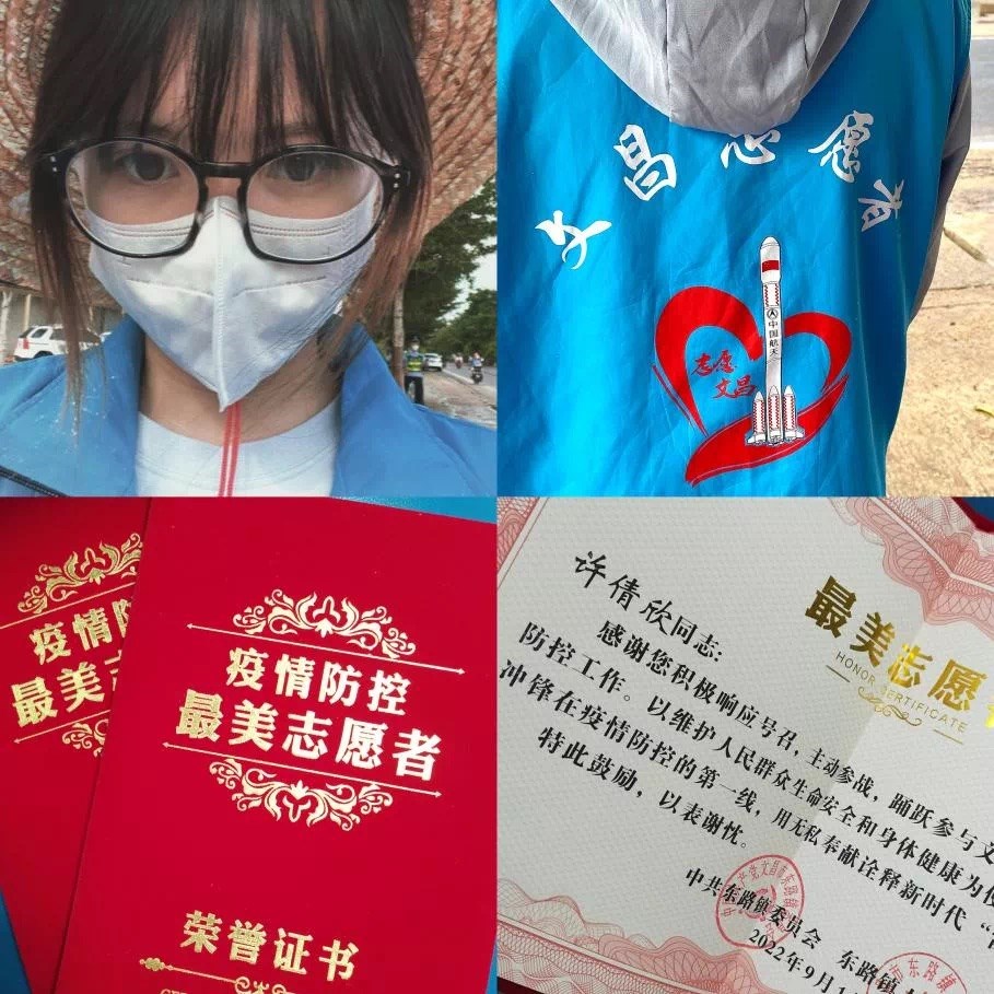 8月8日至8月10日期间,在海南省文昌市东路镇疫情防控志愿服务活动中,担任交通卡点的志愿者。主要负责协助交警部门查车,查验两码(健康码、行程码)以及核酸报告。在8月13日至8月22日在海南省海口市美兰区大致坡镇全员核酸检测的志愿活动。主要负责维持现场秩序、发放核酸贴纸证明以及检查健康码。