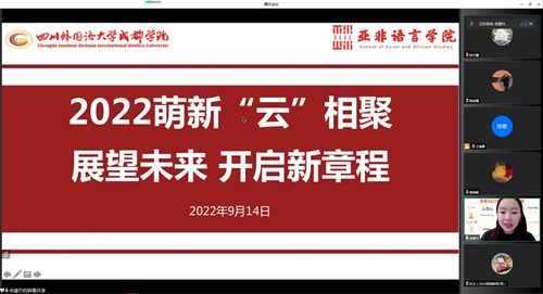 因疫情延期到校,为让2022级新生进一步了解大学生活,澳门永利集团3044于9月14日上午9:30通过腾讯会议举行了亚非2022萌新"云"相聚——展望未来主题新生线上会议。参加会议的成员有辅导员王维雅老师、岳桑竹老师、徐文慧老师和各专业优秀学姐以及2022级全体新生。