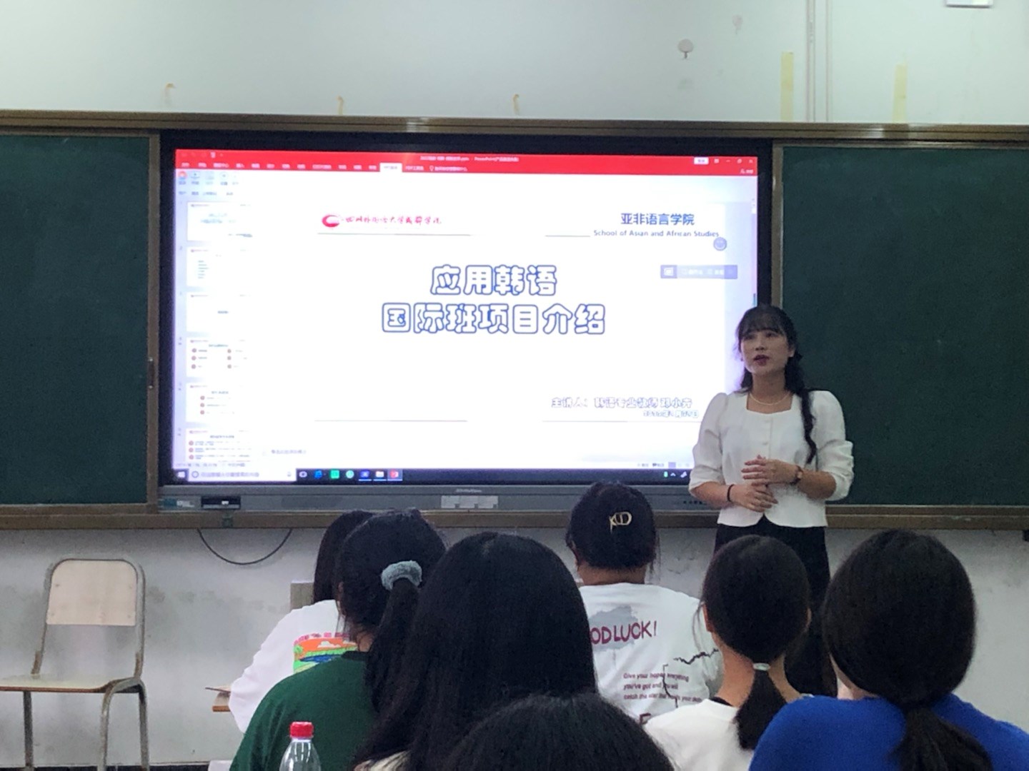 澳门永利集团3044韩语国际班是由四川外国语大学成都学院与韩国国立群山大学中外联合培养的新模式,根据与韩国国立群山大学签订的合作协议,开设的与国际教育接轨的“专升本”模式。国际班将以学生为本,制定严格的教学计划,全日制上课,并注重韩语“听说读写”综合能力的培养和练习,使学生具备出国留学的语言能力和跨文化交际能力。