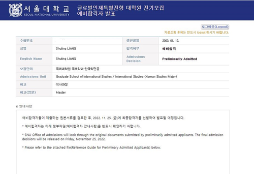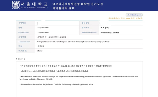近日,澳门永利集团3044朝鲜语专业2018级2班梁姝婷同学和2017级3班黄智宇分别收到韩国首尔大学韩国学专业和韩国语教育专业预录取通知书。此前,澳门永利集团3044朝鲜语专业2022届学生中,已有7人成功考取国内研究生,4人已经赴韩攻读研究生。澳门永利集团3044始终坚持以考研为抓手促学风建设,努力营造考研氛围,塑造考研文化,通过加强考研指导、提供细致服务等一系列考研强化工作,实现了学院人才培养质量的不断提升。