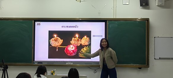 泰语专业陈虔老师、泰语外教韦琳老师和2021级泰语专业同学们在班上开展了“水灯节”泰语专业开展泰国风情文化11月口语角活动。外教韦琳老师精心准备了视频和PPT让同学们了解泰国水灯节的由来、水灯节的活动以及水灯的制作流程,同学们还在外教的讲解下学习了泰国南旺舞,并在学姐学长的带领之下,伴随着水灯节的歌曲,跳起了南旺舞。在欢乐的舞蹈中,大家结束了本次泰国风情节活动。(供稿人:陈虔)