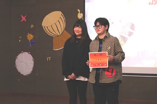 宣布比赛成绩前,来自上一届外语歌唱大赛的人气选手李鑫淼为大家带来了一首《fxxk it 》,台下的同学齐声喝彩,掌声连连,响彻会场。