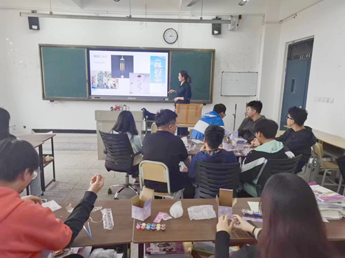 下午3点,活动正式开始。袁老师首先为同学们讲解了中日风铃的区别,日本风铃的由来和象征意义,不同地区的风铃样式材质差异,以及每年夏天日本各地举办的有关风铃的活动。同学们听了袁老师的讲解和对制作流程的学习,纷纷开始自己动手制作,袁老师走入学生中,细心的指导每位同学,同学们也很快的完成了自己的创作。