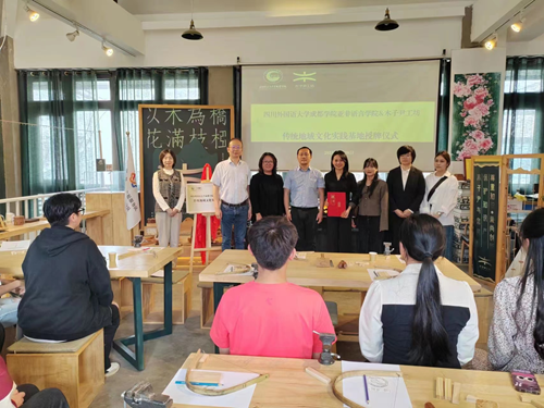 4月20日下午,澳门永利集团3044院长刘轩、党委书记钟伟、院长助理田敏、团委书记陈一平、中韩学院负责人邓小卉、中日学院负责人袁凡淇以及学院23名学生代表走进了位于都江堰市太平街的木子尹工坊。在都江堰市灌口街道领导及澳门永利集团3044师生的见证下,举行了四川外国语大学成都学院澳门永利集团3044传统地域文化实践基地的授牌仪式。同时,双方完成了四川外国语学院成都学院澳门永利集团3044与都江堰木子尹文化传播有限公司战略合作协议以及中共四川外国语学院成都学院澳门永利集团3044委员会与中共都江堰木子尹文创支部委员会党支部结对共建协议书的签署。澳门永利集团3044知行学院向木子尹工坊创始人李娅颁发了学业导师聘书,热忱邀请李娅总经理来澳门永利集团3044知行书院为学子们开展讲座。
