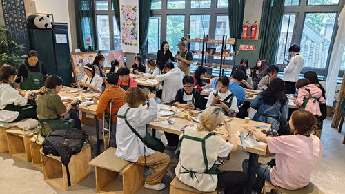 木子尹工坊以木作为载体,以文创设计为桥,传递诚挚的人文情怀,并一直致力于以都江堰山、水、人文、道、熊猫文化为切入点,以社会主义核心价值观为文创表达方向,研发出一系列充满地域文化特色的旅游文创产品。木子尹工坊的创始人李娅向大家介绍并讲述了以都江堰地域文化特色的相关文创展品以及其背后的故事。希望同学们能从优秀的地域文化中汲取营养,获得向上的力量。同时,同学们还在木作老师的细心指导下亲手制作杩槎杯垫,体验不一样的木作课程。
