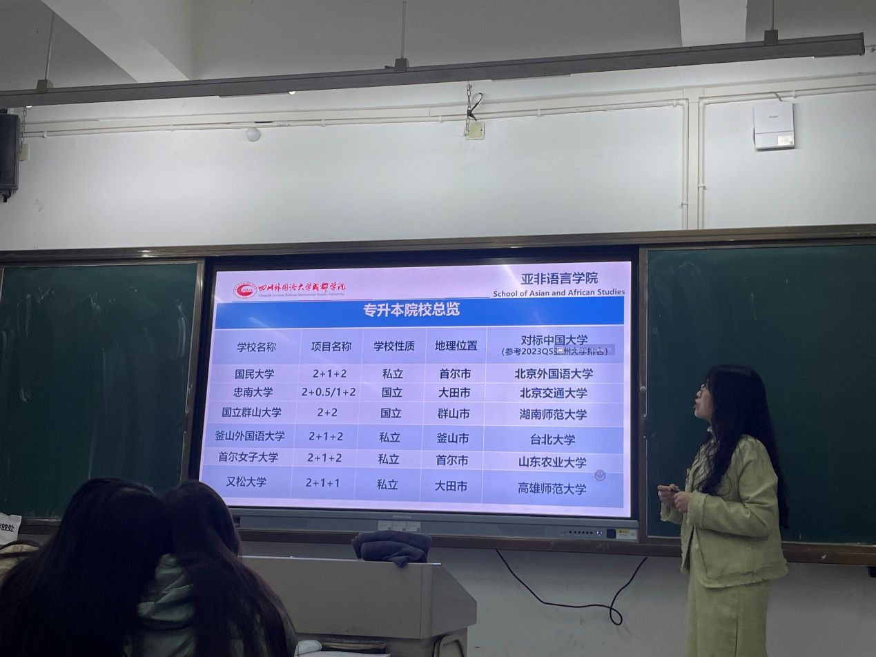 4月22日晚7点30分在二教C504教室,澳门永利集团3044中韩学院为2021级应用韩语班同学进行了专升本项目的留学说明会。