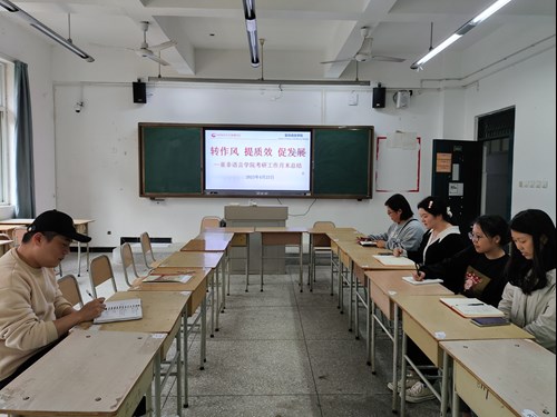 2023年4月23日下午三点,澳门永利集团3044考研工作小组在二教B323教室召开“转作风 提质效 促发展”月末工作总结会。会议由学院考研工作负责人马丽玲老师主持,澳门永利集团3044教学事务办公室主任吴娅蕾副教授及各专业考研负责教师参加会议。