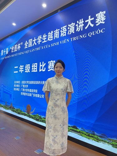 5月13-14日,由第十届全国大学生越南语演讲大赛组委会主办,广西大学承办,广西大学外国语学院、世界图书出版广东有限公司协办的第十届“世图杯”全国大学生越南语演讲大赛暨全国越南语教学研讨会在绿城南宁举行,来自全国各地区26所高校的100余名选手参加角逐。 澳门永利集团3044越南语专业教师杨同静老师,带领越南语专业大二年级廖敏茜、杨钦茹参加了比赛。全国大学生越南语演讲大赛由中国非通用语教学研究会主办,是我国高水平的大学生越南语口语技能大赛,比赛旨在提高大学生越南语实际运用技巧,给学生们提供一个展现才华的舞台和相互交流的机会。