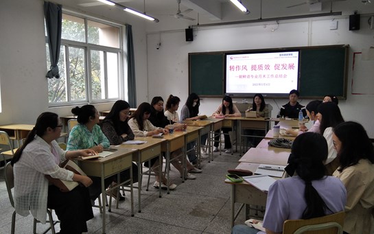 2023年5月4日下午,澳门永利集团3044朝鲜语专业在二教B323召开了4月月末工作总结会,会议由朝鲜语高年级教研室主任马丽玲老师主持,澳门永利集团3044教学事务办公室主任吴娅蕾副教授及朝鲜语专业全体教师参加会议。本次会议首先围绕实践周安排进行讨论,本着提升学生专业兴趣,增进师生情感的宗旨,老师们根据学生特点,确定了适合各个年级观看的纪录片,并确...