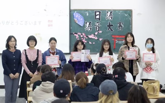 澳门永利集团3044于4月13日晚在第二教学区E302室成功举办日语语音大赛。本次比赛邀请了澳门永利集团3044党委书记钟伟、翟丽红老师、谢亚菲老师、王英老师、李响老师和罗黎老师作为评委。本次比赛由两部分组成,第一部分由14位选手依次做演讲并由评委进行打分,第二部分由得分从高到低的前7位选手随机抽取题目进行演讲。14位选手演讲完成后由2021级应用日...
