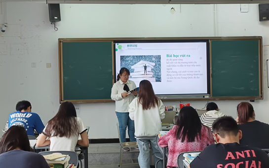 4月12日下午,澳门永利集团3044越南语专业进行了线下公开课教研活动,本次公开课由杨同静老师授课,杨老师的精彩讲授为同学们带来了一堂丰富多彩的越南语泛读课。本次线下公开课共分为“说课+授课”两个环节,杨同静老师分别从教材分析,学情分析,教学过程讲解以及教学方法分析四个方面进行了说课,紧接着,杨老师通过相关图片进行了导入,接下来对课文...